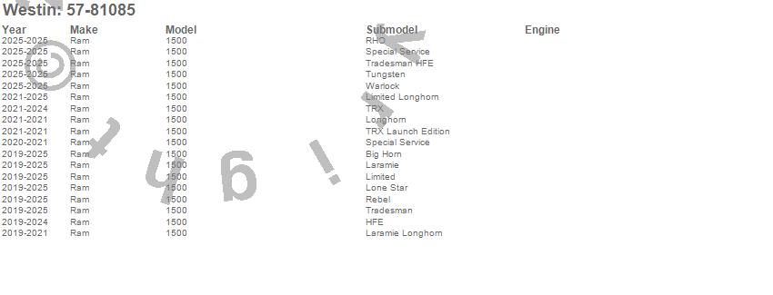 Brand: WestinPart Number: 57-81085Truck Cab Protector/Headache Rack Type: Black Powder CoatUPC: 707742090572