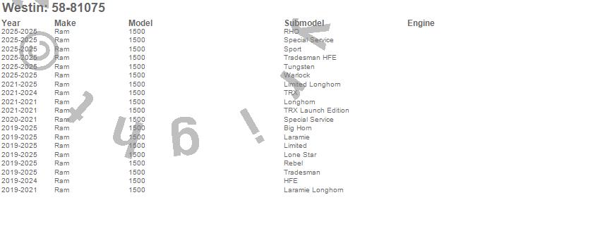 Brand: WestinPart Number: 58-81075Bumper- Rear Type: Textured BlackUPC: 707742093351