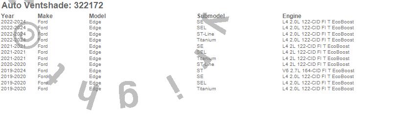 Below is an abbreviated list of applications for the Aeroskin Smoke Hood Protector.Edge, Ford, 2024, 2023, 2022, 2021, 2020, 2019