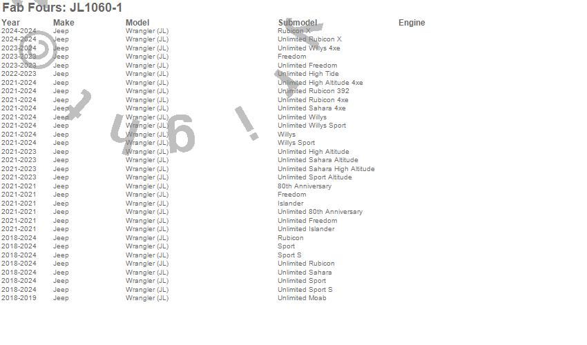 Brand: Fab FoursPart Number: JL1060-1Cowl Panel Type: 3/16 In. Steel Construction - 2 Stage Matte Black Powder CoatUPC: 005810116774