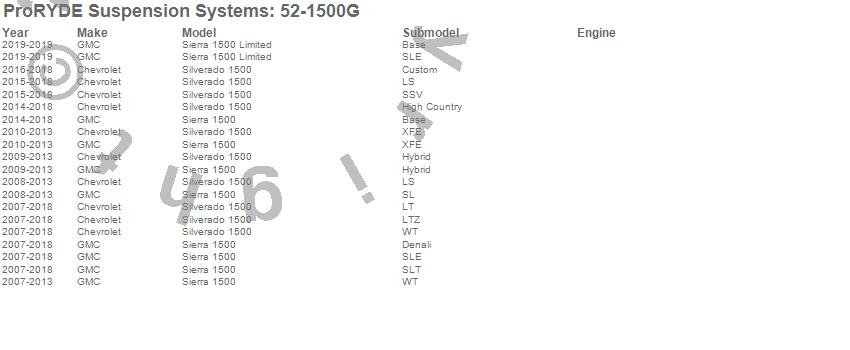 Below is an abbreviated list of applications for the SuperBlok 3 In 1 Block and U-Bolt Kit.Sierra 1500, Sierra 1500 Limited, Silverado 1500, Silverado 1500 LD, Chevrolet, GMC, 2019, 2018, 2017, 2016, 2015, 2014, 2013, 2012, 2011, 2010, 2009, 2008, 2007