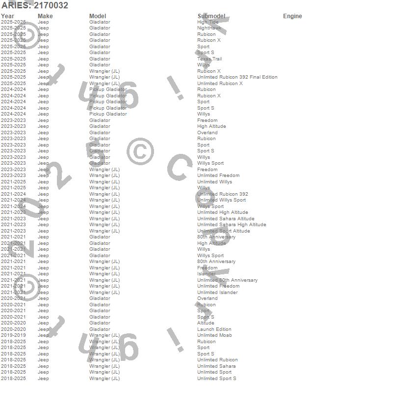 Below is an abbreviated list of applications for the Pro Series Grille Guard w/LED Light Bar.Gladiator, Pickup Gladiator, Wrangler (JL), Jeep, 2026, 2025, 2024, 2023, 2022, 2021, 2020, 2019, 2018
