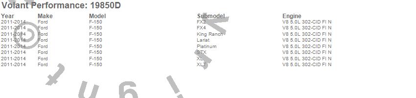 Below is an abbreviated list of applications for the Cold Air Intake Kit.F-150, Ford, 2014, 2013, 2012, 2011