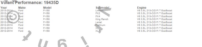 Below is an abbreviated list of applications for the Cold Air Intake Kit.F-150, Ford, 2014, 2013, 2012