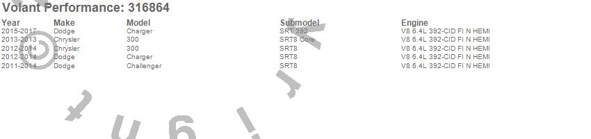 Below is an abbreviated list of applications for the Cold Air Intake Kit.300, Challenger, Charger, Chrysler, Dodge, 2017, 2016, 2015, 2014, 2013, 2012, 2011