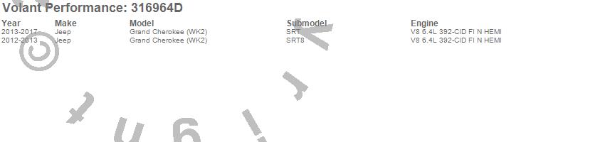 Below is an abbreviated list of applications for the Cold Air Intake Kit.Grand Cherokee (WK2), Jeep, 2017, 2016, 2015, 2014, 2013, 2012
