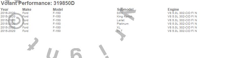 Below is an abbreviated list of applications for the Cold Air Intake Kit.F-150, Ford, 2020, 2019, 2018, 2017, 2016, 2015