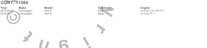 Brand: CURTPart Number: 11564Trailer Hitch Type: Rear - 2000lbs. Gross Trailer Weight - 200lbs. Tongue WeightUPC: 612314115648