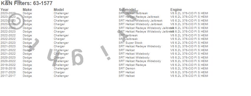 Below is an abbreviated list of applications for the 63 Series Aircharger Kit.Challenger, Dodge, 2019, 2018