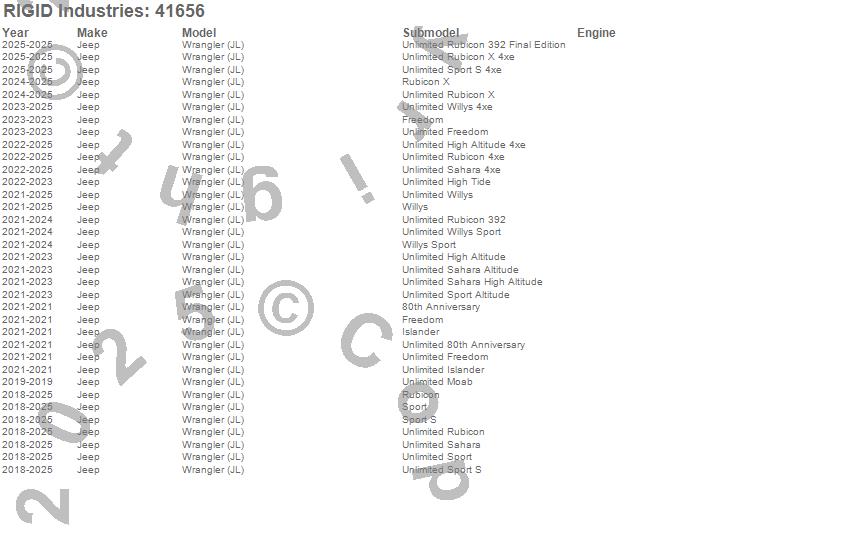 Brand: Rigid IndustriesPart Number: 41656Offroad/Racing Lamp Mount Type: PairUPC: 849774032745