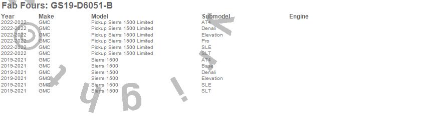 Below is an abbreviated list of applications for the Vengeance Front Bumper.Pickup Sierra 1500 Limited, Sierra 1500, GMC, 2022, 2021, 2020, 2019
