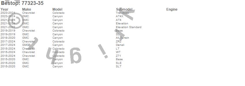 Below is an abbreviated list of applications for the Supertop For Truck.Canyon, Colorado, Chevrolet, GMC, 2025, 2024, 2023, 2022, 2021, 2020, 2019, 2018, 2017, 2016, 2015