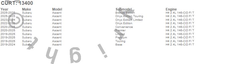 Below is an abbreviated list of applications for the Class III 2 in. Receiver Hitch.Ascent, Subaru, 2025, 2024, 2023, 2022, 2021, 2020, 2019