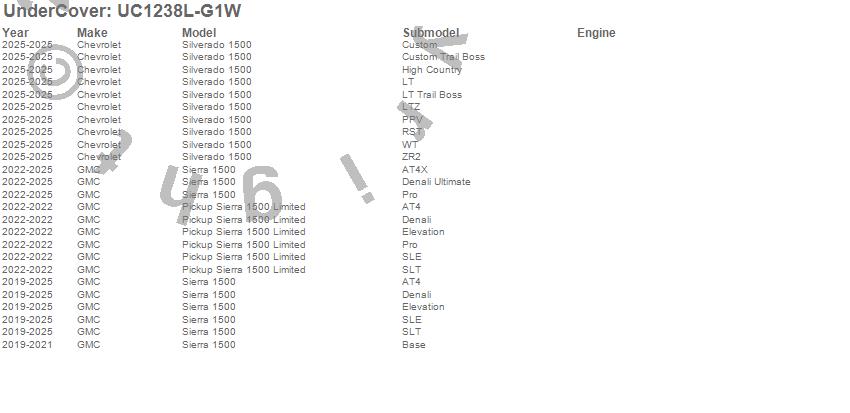 Below is an abbreviated list of applications for the Elite LX Tonneau Cover.Pickup Sierra 1500 Limited, Sierra 1500, Silverado 1500, Chevrolet, GMC, 2025, 2024, 2023, 2022, 2021, 2020, 2019
