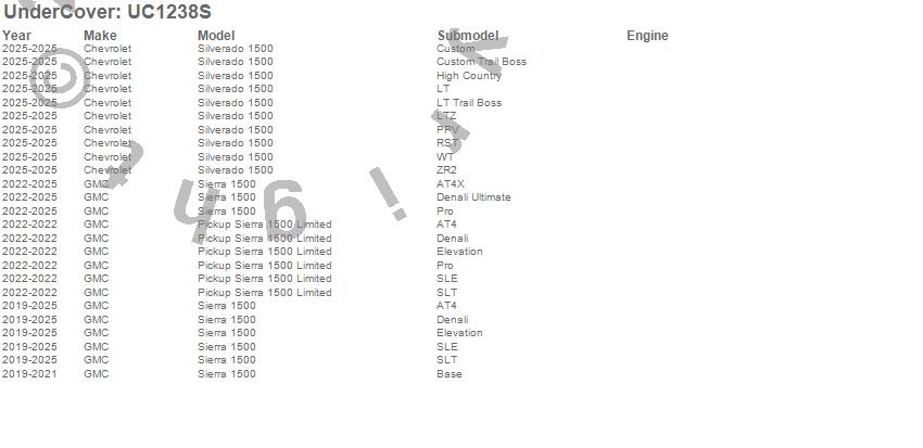 Below is an abbreviated list of applications for the Elite Smooth Tonneau Cover.Pickup Sierra 1500 Limited, Sierra 1500, Silverado 1500, Chevrolet, GMC, 2026, 2025, 2024, 2023, 2022, 2021, 2020, 2019