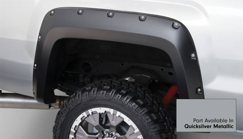 Buy this Pocket Style Color Match Fender Flares Bushwacker 40974-54 4 pc. - Front Tire Coverage 1.75 in. - Front Height 6.5 in. - Rear Tire Coverage 2 in - Rear Height 6.5 in. - Smooth - Quicksilver Metallic here at SVCustoms.com an authorized Bushwacker Fender Flare dealer and distributor.