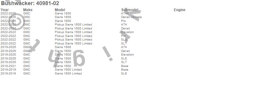 Below is an abbreviated list of applications for the Extend-A-Fender Flares.Pickup Sierra 1500 Limited, Sierra 1500, Sierra 1500 Limited, GMC, 2025, 2024, 2023, 2022, 2021, 2020, 2019