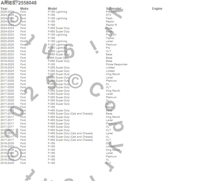 Below is an abbreviated list of applications for the AscentStep Running Boards w/Mounting Brackets.F-150, F-150 Lightning, F-250 Super Duty, F-350 Super Duty, F-450 Super Duty, F-550 Super Duty, F450 Super Duty, Ford, 2026, 2025, 2024, 2023, 2022, 2021, 2020, 2019, 2018, 2017, 2016, 2015