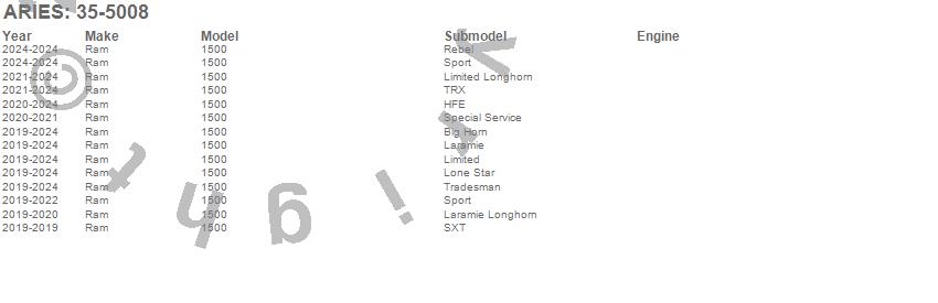 Brand: ARIESPart Number: 35-5008Bull Bar Type: 3 in. - w/Stainless Skid Plate - Polished Stainless Steel - May Interfere w/Forward Facing Cameras Or SensorsUPC: 849055030392