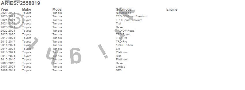 Below is an abbreviated list of applications for the AscentStep Running Boards w/Mounting Brackets.Tundra, Toyota, 2021, 2020, 2019, 2018, 2017, 2016, 2015, 2014, 2013, 2012, 2011, 2010, 2009, 2008, 2007