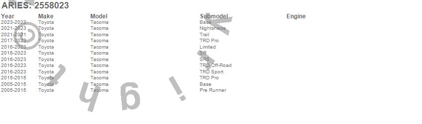 Below is an abbreviated list of applications for the AscentStep Running Boards w/Mounting Brackets.Tacoma, Toyota, 2023, 2022, 2021, 2020, 2019, 2018, 2017, 2016, 2015, 2014, 2013, 2012, 2011, 2010, 2009, 2008, 2007, 2006