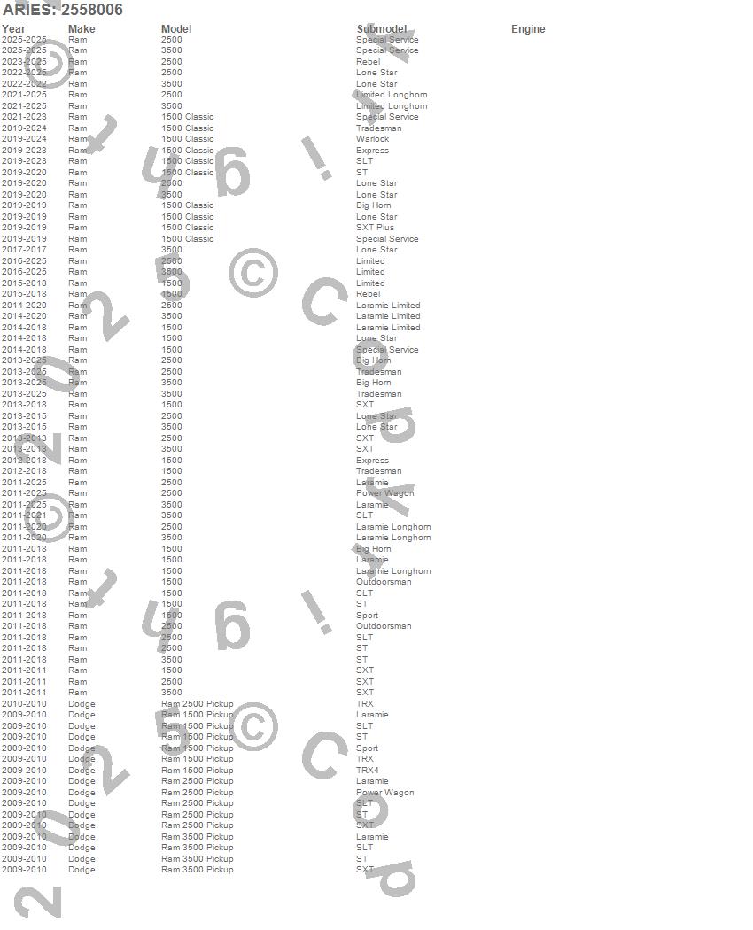 Below is an abbreviated list of applications for the AscentStep Running Boards w/Mounting Brackets.1500, 1500 Classic, 2500, 3500, Ram 1500, Ram 2500, Ram 3500, Dodge, Ram, 2026, 2025, 2024, 2023, 2022, 2021, 2020, 2019, 2018, 2017, 2016