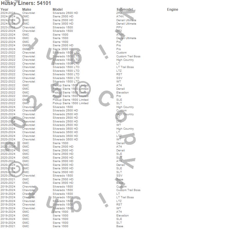 Below is an abbreviated list of applications for the X-act Contour Floor Liner.Pickup Sierra 1500 Limited, Sierra 1500, Sierra 2500 HD, Sierra 3500 HD, Silverado 1500, Silverado 1500 LTD, Silverado 2500 HD, Silverado 3500 HD, Chevrolet, GMC, 2026, 2025, 2024, 2023, 2022, 2021, 2020, 2019
