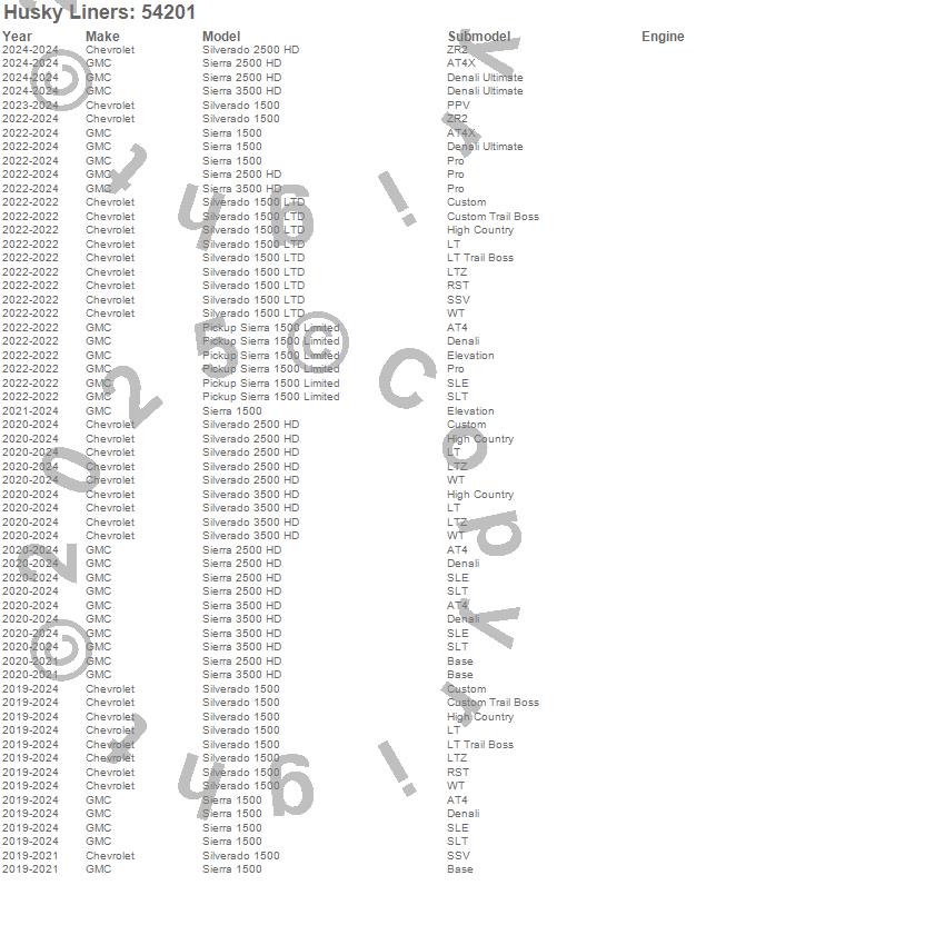 Below is an abbreviated list of applications for the X-act Contour Floor Liner.Pickup Sierra 1500 Limited, Sierra 1500, Sierra 2500 HD, Sierra 3500 HD, Silverado 1500, Silverado 1500 LTD, Silverado 2500 HD, Silverado 3500 HD, Chevrolet, GMC, 2026, 2025, 2024, 2023, 2022, 2021, 2020, 2019