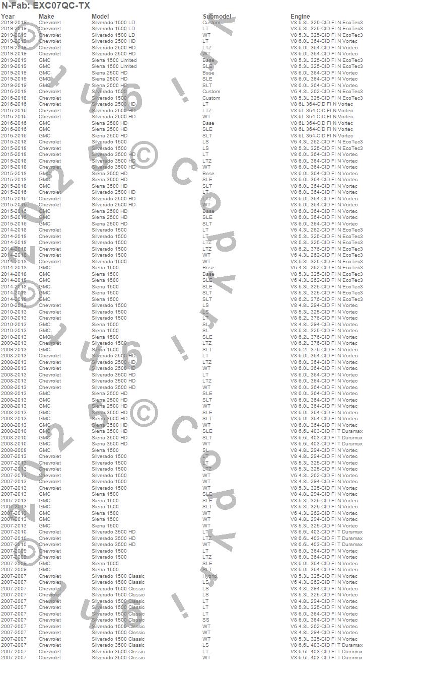 Below is an abbreviated list of applications for the Cab Length EPYX Step System.Sierra 1500, Sierra 1500 Limited, Sierra 2500 HD, Sierra 3500 HD, Silverado 1500, Silverado 1500 Classic, Silverado 1500 LD, Silverado 2500 HD, Silverado 3500 Classic, Silverado 3500 HD, Chevrolet, GMC, 2019, 2018, 2017, 2016, 2015, 2014, 2013, 2012