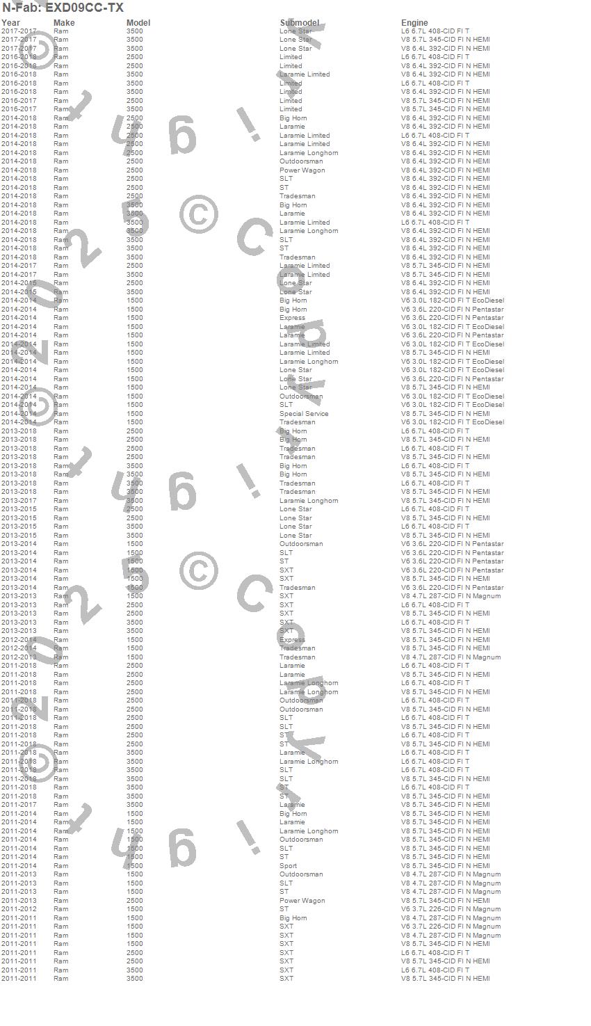 Below is an abbreviated list of applications for the Cab Length EPYX Step System.1500, 2500, 3500, Ram, 2018, 2017, 2016, 2015, 2014, 2013, 2012, 2011