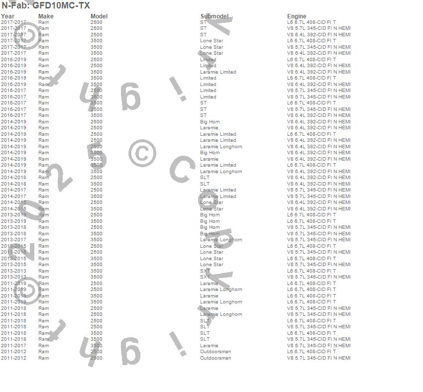 Below is an abbreviated list of applications for the Growler Step System.2500, 3500, Ram, 2019, 2018, 2017, 2016, 2015, 2014, 2013, 2012, 2011