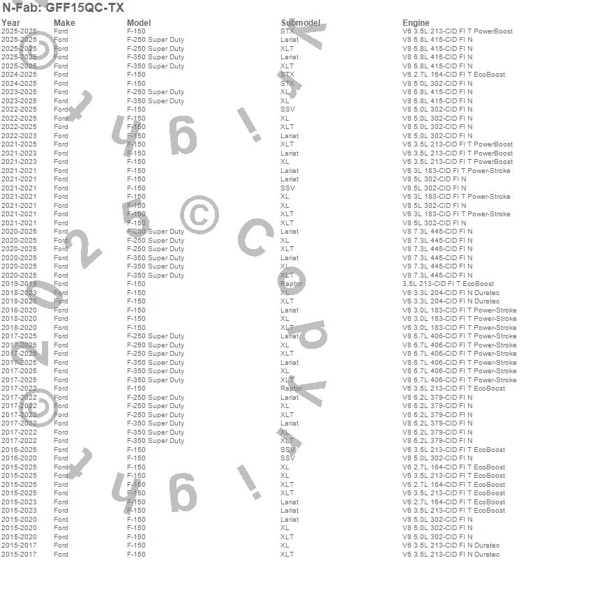 Brand: N-FabPart Number: GFF15QC-TXNerf/Step Bar Type: Textured BlackUPC: 843206123506