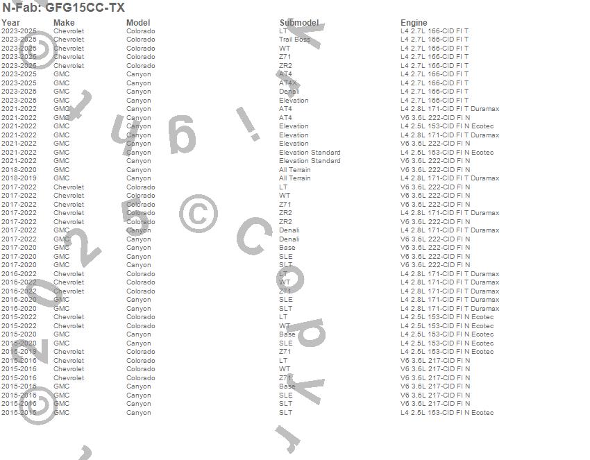 Below is an abbreviated list of applications for the Growler Step System.Canyon, Colorado, Chevrolet, GMC, 2025, 2024, 2023, 2022, 2021, 2020, 2019, 2018, 2017, 2016, 2015