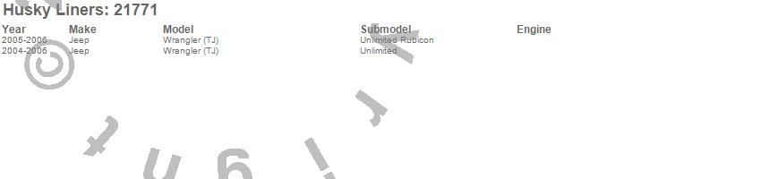 Below is an abbreviated list of applications for the Classic Style Cargo Liner.Wrangler (TJ), Jeep, 2006, 2005, 2004