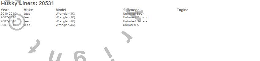Below is an abbreviated list of applications for the Classic Style Cargo Liner.Wrangler (JK), Jeep, 2010, 2009, 2008, 2007