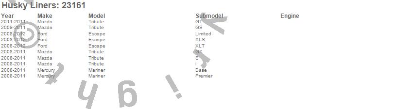 Below is an abbreviated list of applications for the Classic Style Cargo Liner.Escape, Mariner, Tribute, Ford, Mazda, Mercury, 2012, 2011, 2010, 2009, 2008