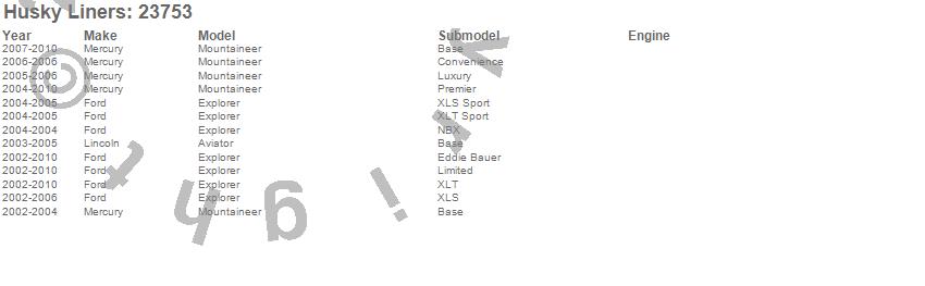 Below is an abbreviated list of applications for the Classic Style Cargo Liner.Aviator, Explorer, Mountaineer, Ford, Lincoln, Mercury, 2010, 2009, 2008, 2007, 2006, 2005, 2004, 2003, 2002