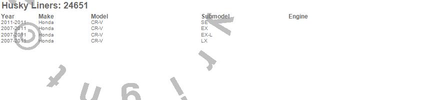 Below is an abbreviated list of applications for the Classic Style Cargo Liner.CR-V, Honda, 2011, 2010, 2009, 2008, 2007