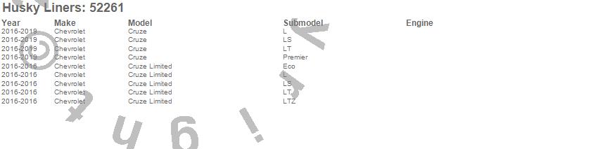 Below is an abbreviated list of applications for the X-act Contour Floor Liner.Cruze, Cruze Limited, Chevrolet, 2019, 2018, 2017, 2016