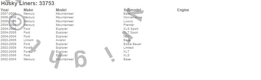 Below is an abbreviated list of applications for the Classic Style Floor Liner.Aviator, Explorer, Mountaineer, Ford, Lincoln, Mercury, 2009, 2008, 2007, 2006, 2005, 2004, 2003, 2002