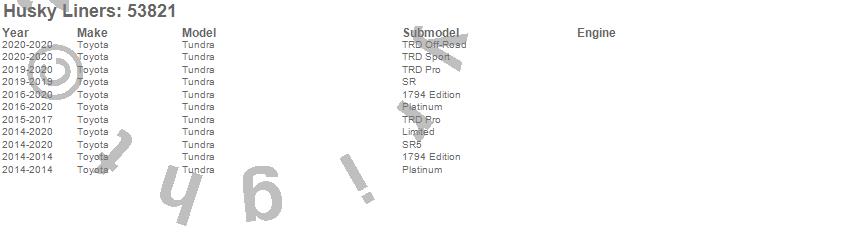 Below is an abbreviated list of applications for the X-act Contour Floor Liner.Tundra, Toyota, 2020, 2019, 2018, 2017, 2016, 2015, 2014