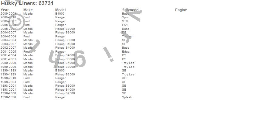 Below is an abbreviated list of applications for the Classic Style Floor Liner.B2500, B3000, B4000, Ranger, Ford, Mazda, 2010, 2009, 2008, 2007, 2006, 2005, 2004, 2003, 2002, 2001, 2000, 1999, 1998