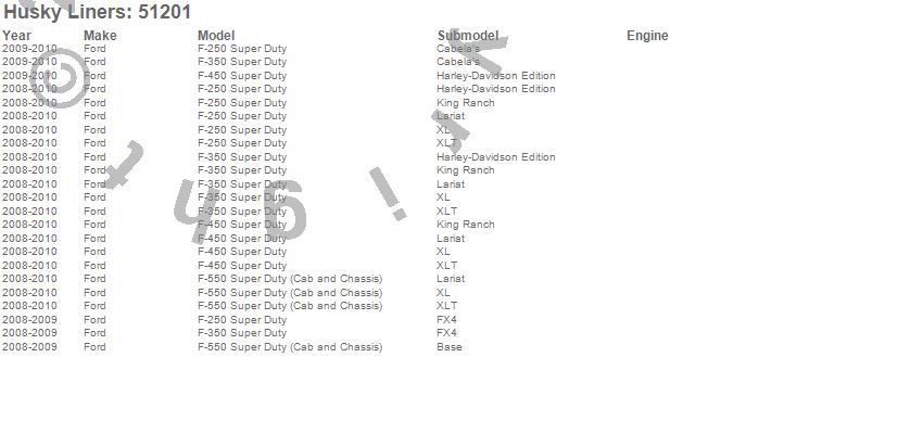 Below is an abbreviated list of applications for the Heavy Duty Floor Mat.F-250 Super Duty, F-350 Super Duty, F-450 Super Duty, F-550 Super Duty, Ford, 2010, 2009, 2008