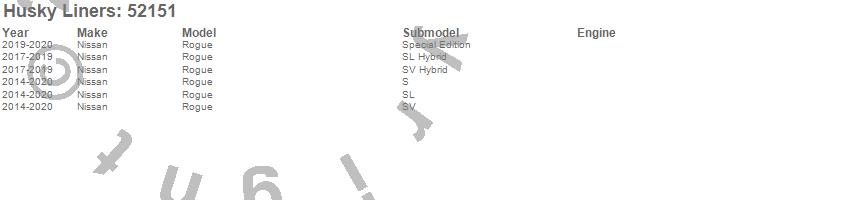 Below is an abbreviated list of applications for the X-act Contour Floor Liner.Rogue, Nissan, 2020, 2019, 2018, 2017, 2016, 2015, 2014