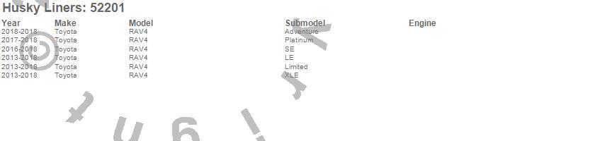 Below is an abbreviated list of applications for the X-act Contour Floor Liner.RAV4, Toyota, 2018, 2017, 2016, 2015, 2014, 2013
