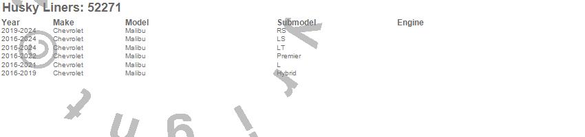 Below is an abbreviated list of applications for the X-act Contour Floor Liner.Malibu, Chevrolet, 2025, 2024, 2023, 2022, 2021, 2020, 2019, 2018, 2017, 2016