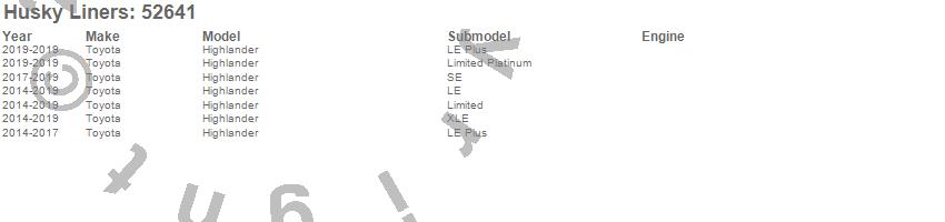 Below is an abbreviated list of applications for the X-act Contour Floor Liner.Highlander, Toyota, 2019, 2018, 2017, 2016, 2015, 2014