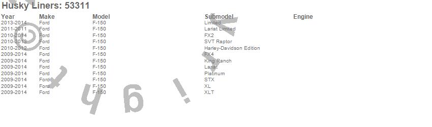 Below is an abbreviated list of applications for the X-act Contour Floor Liner.F-150, Ford, 2014, 2013, 2012, 2011, 2010, 2009