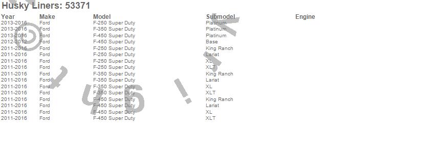 Below is an abbreviated list of applications for the X-act Contour Center Hump Floor Liner.F-250 Super Duty, F-350 Super Duty, F-450 Super Duty, Ford, 2016, 2015, 2014, 2013, 2012, 2011
