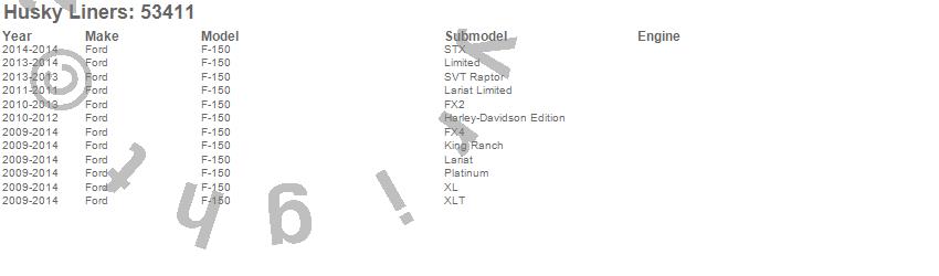 Below is an abbreviated list of applications for the X-act Contour Floor Liner.F-150, Ford, 2014, 2013, 2012, 2011, 2010, 2009